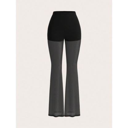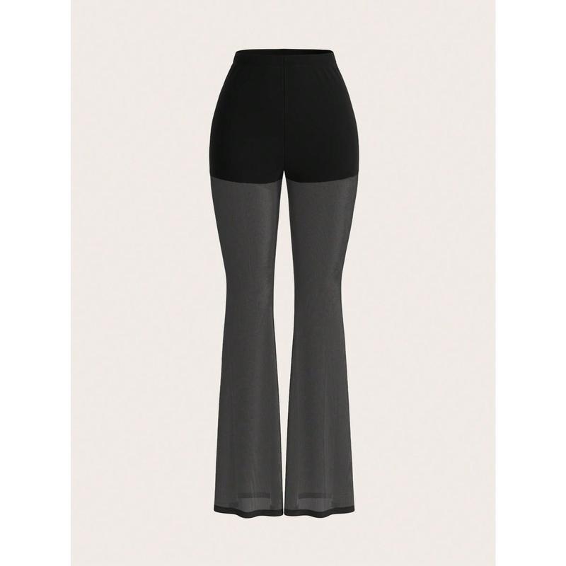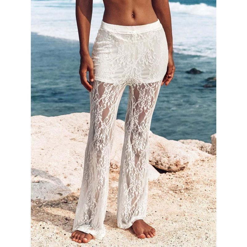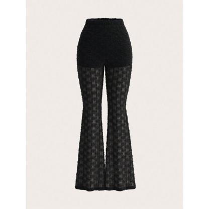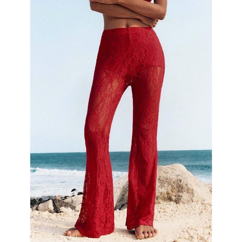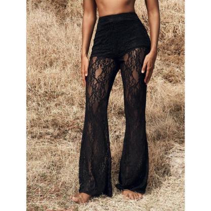 Women's Solid Lace Flare Leg Pants, Sexy Comfy  Bell Bottom Trousers for Daily Wear, Ladies Bottoms for Summer