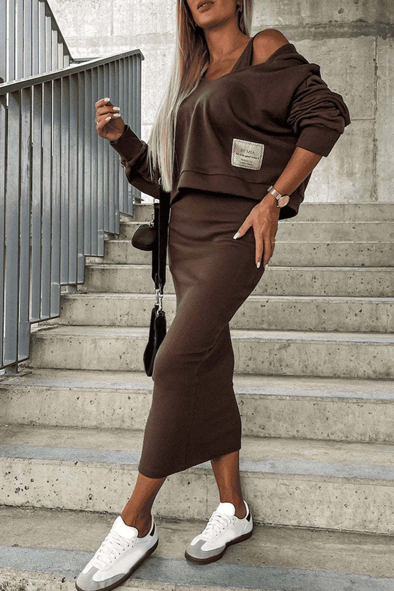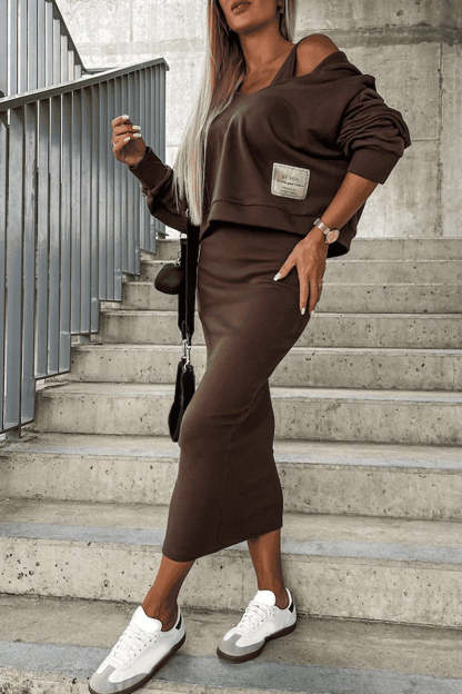 Women's Hooded Long Sleeve Casual Sweater Suit Dress