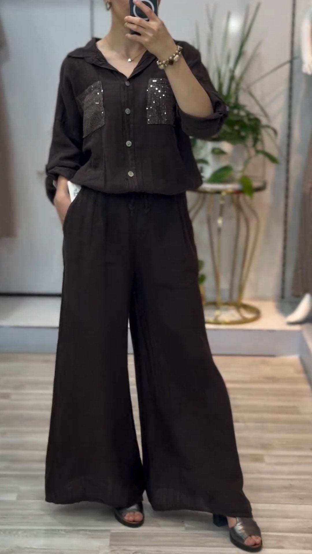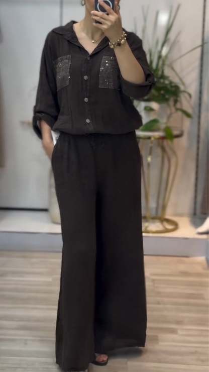 Women's Lapel Mid-length Sleeve Sequined Casual Suit