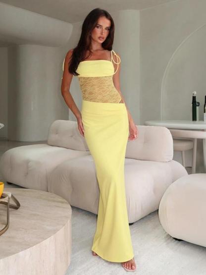 【Sleek Straps】: Featuring chic tie straps, this dress offers adjustable fit and adds a trendy element to the overall look.