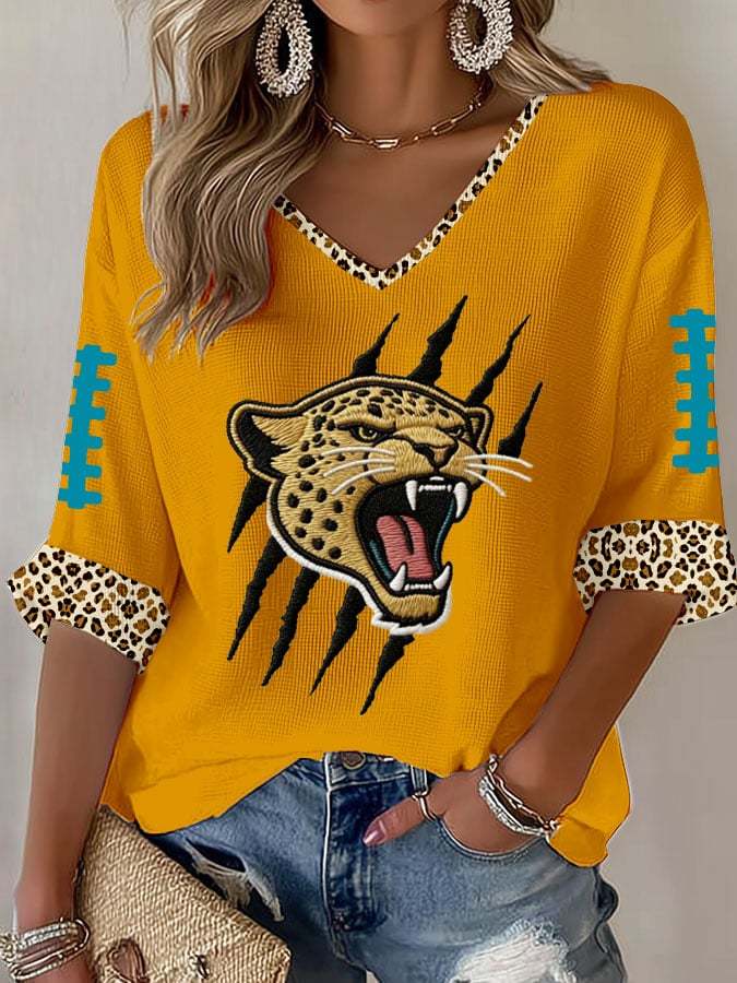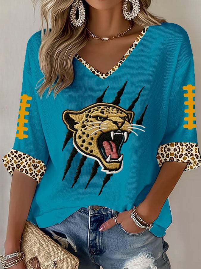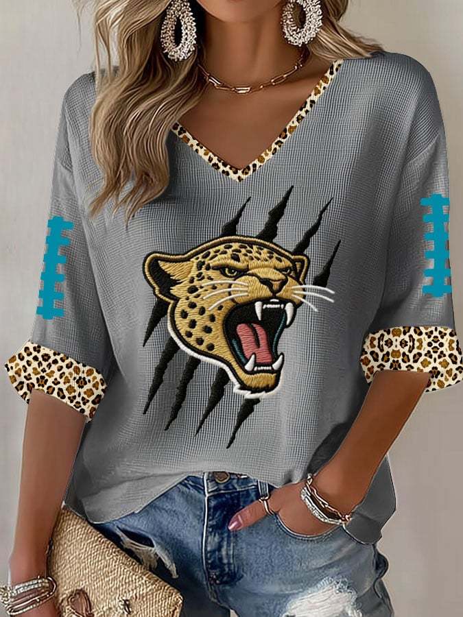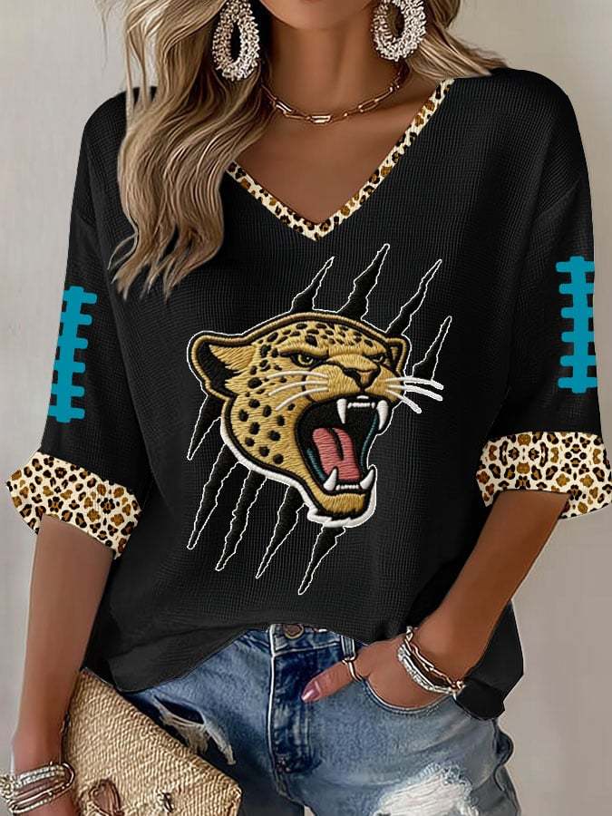 Women's Rugby Print Waffle Long Sleeve T-Shirt