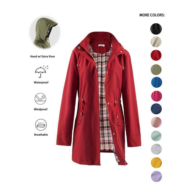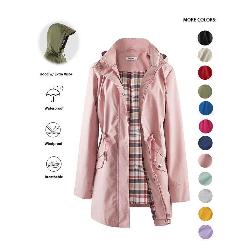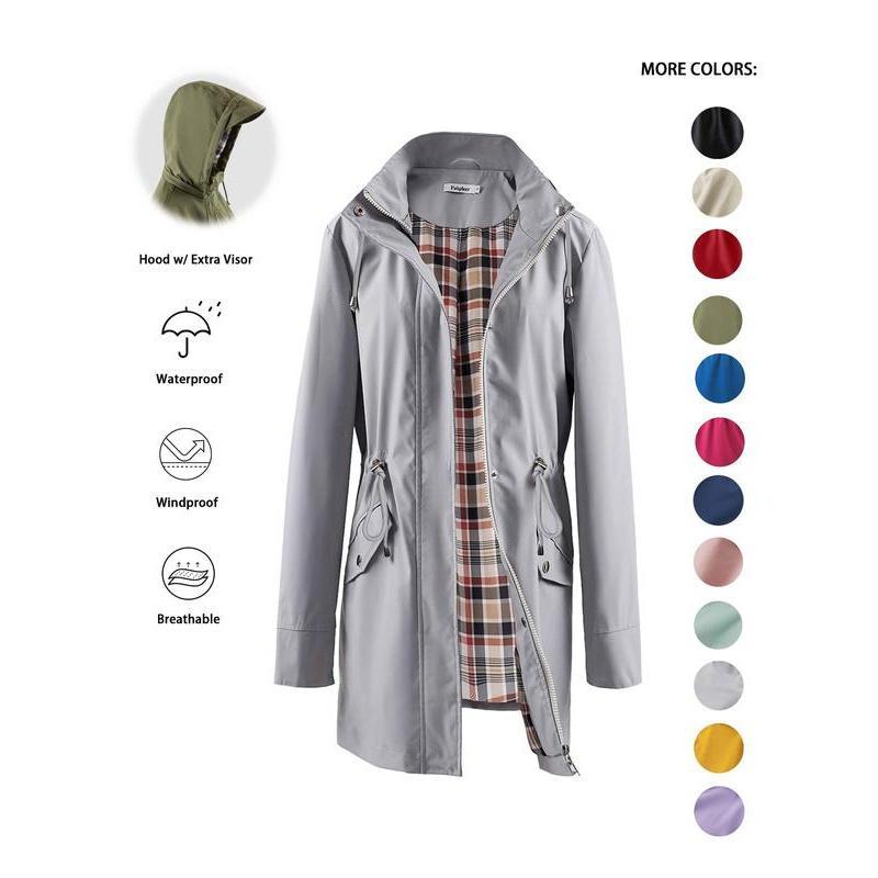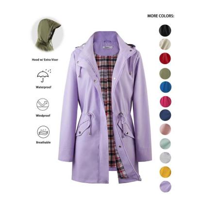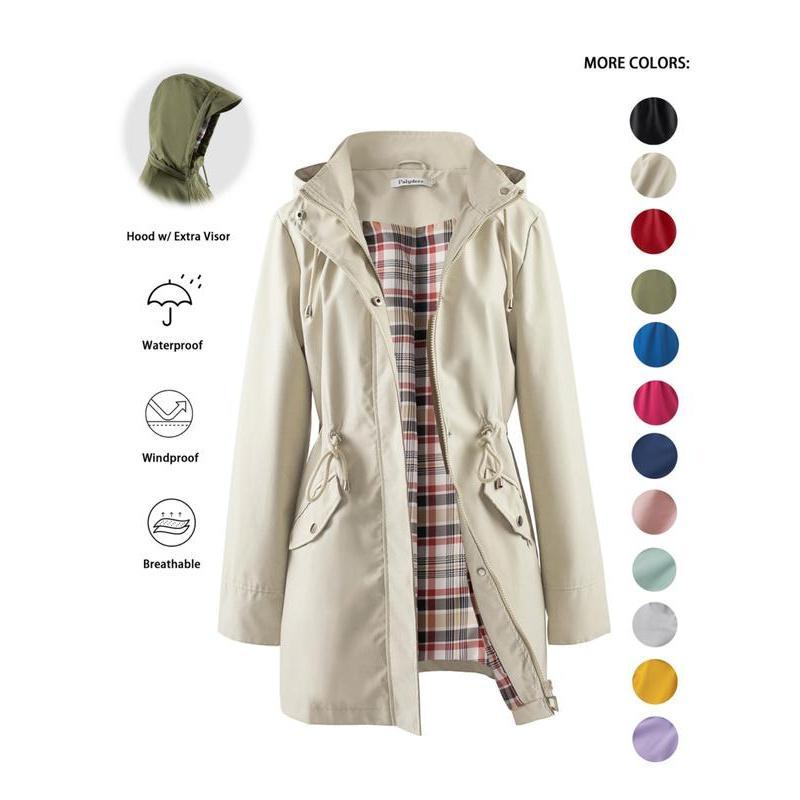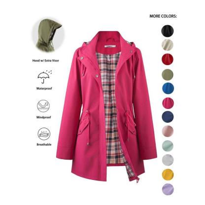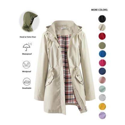 Women's Solid Color Drawstring Zip-Up Hooded Trench Coat Long Sleeve Waterproof Windproof Soft Comfortable Casual Outerwear Suitable For Spring Fall Daily Wear Outings