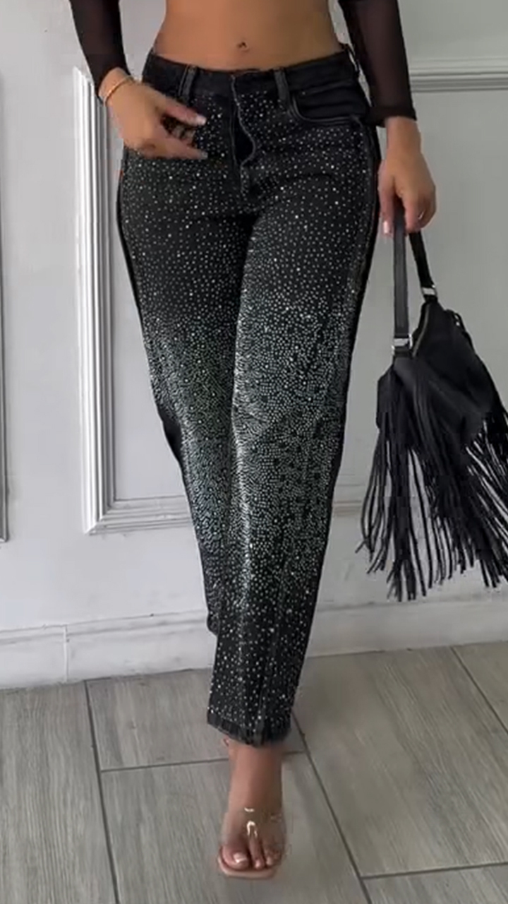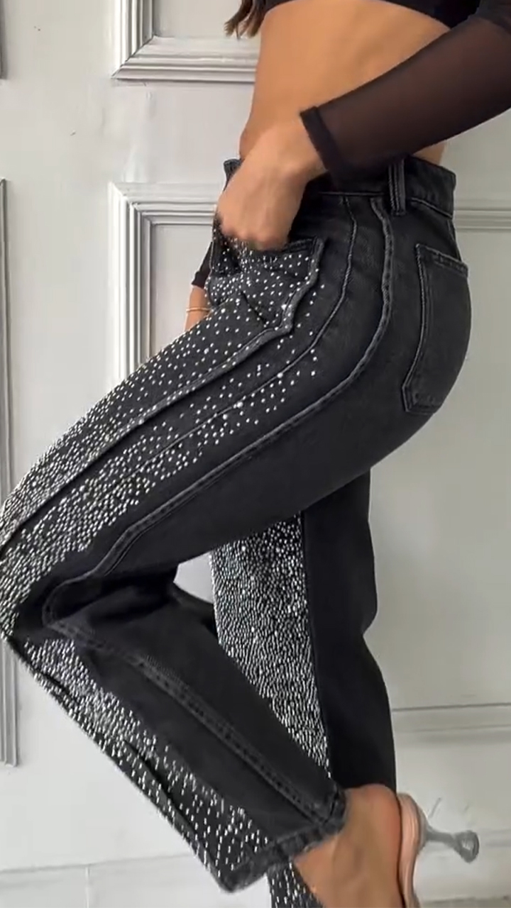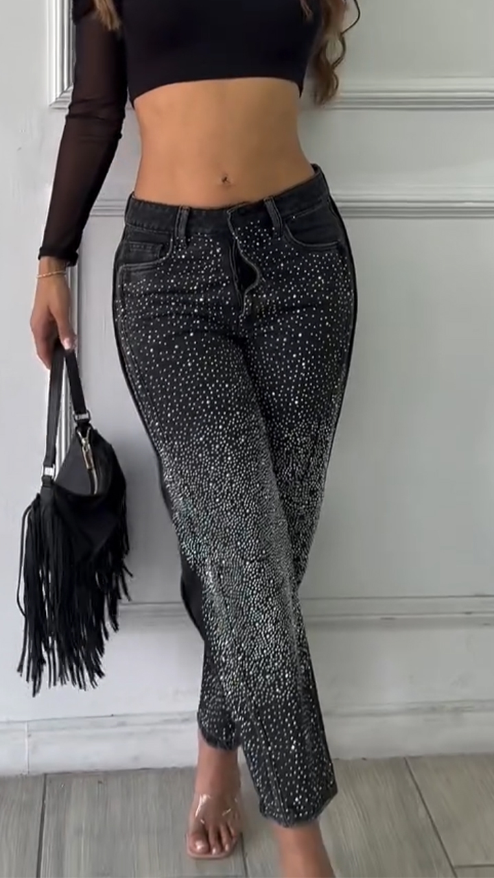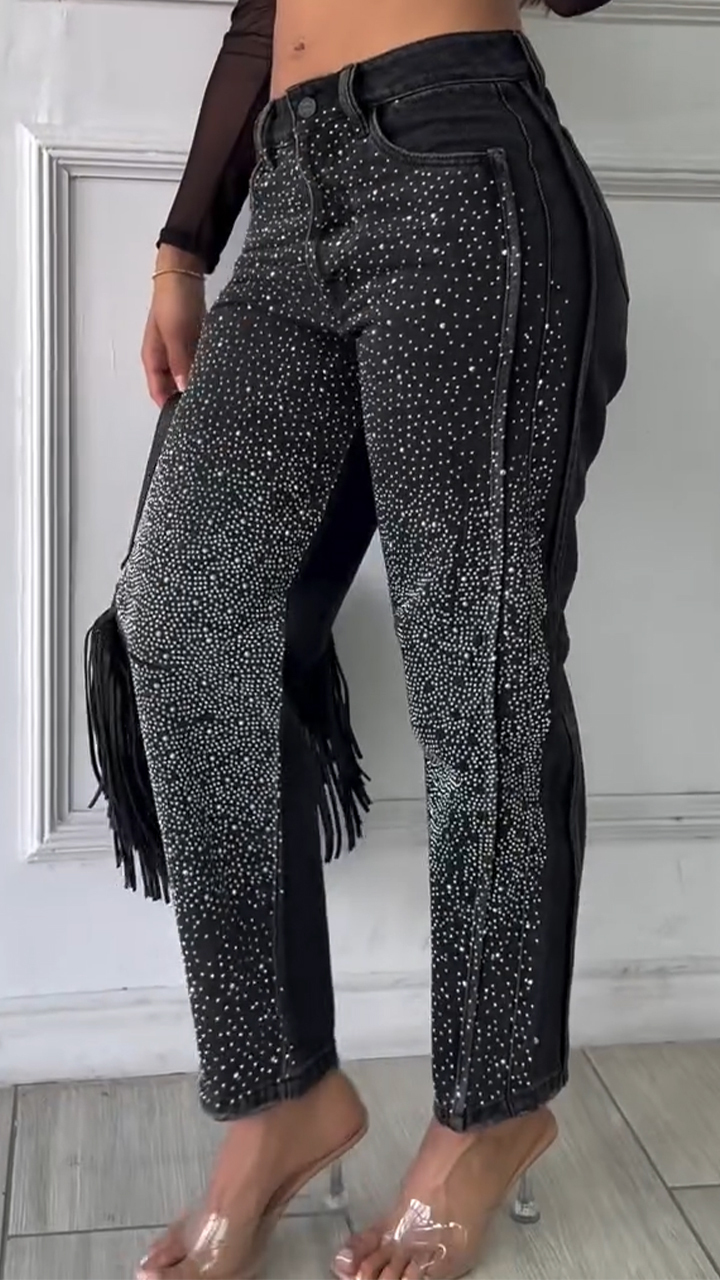 Womens Spliced and Hot Diamond Casual Jeans
