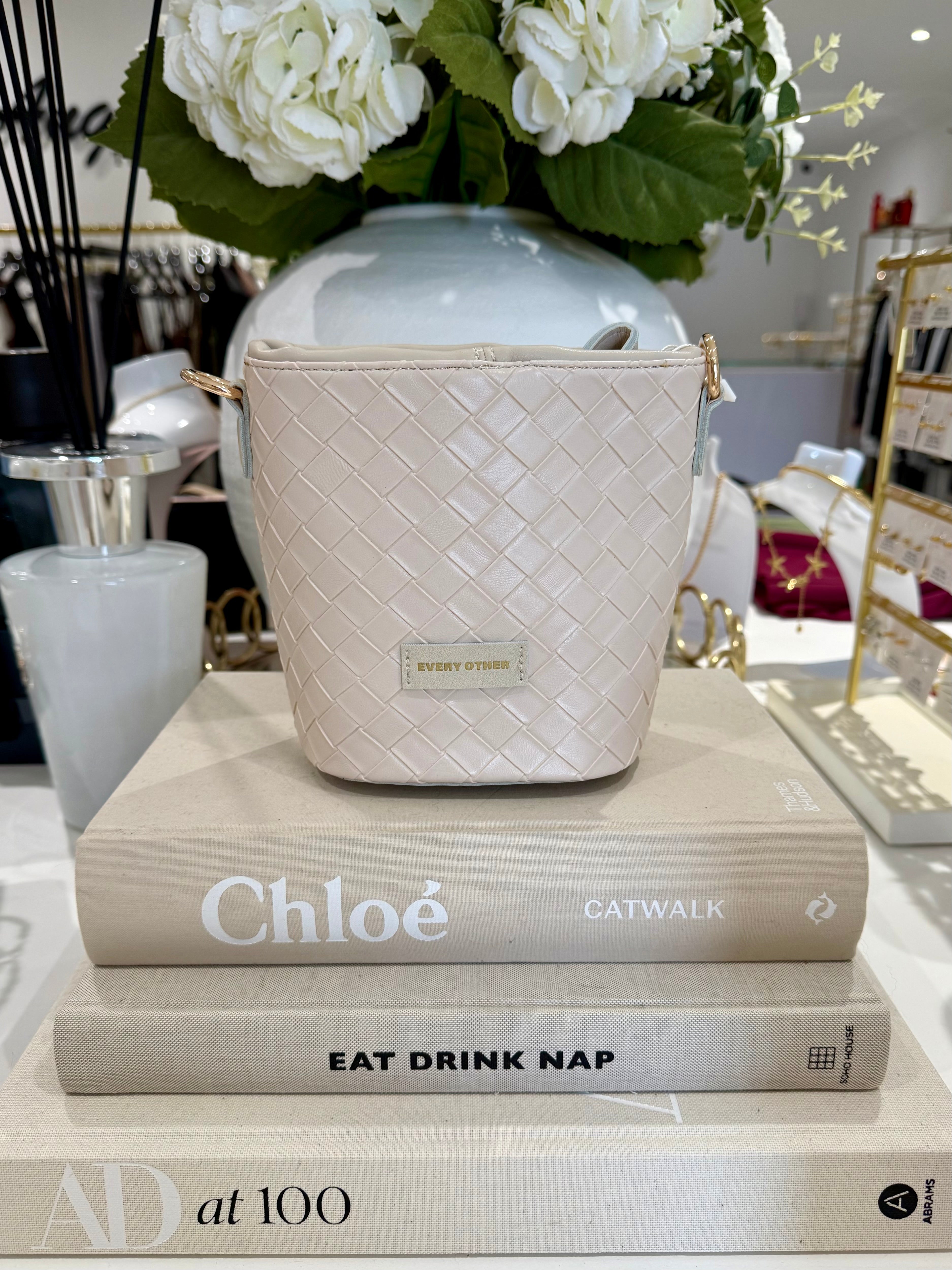 Woven Drawstring Bucket Bag