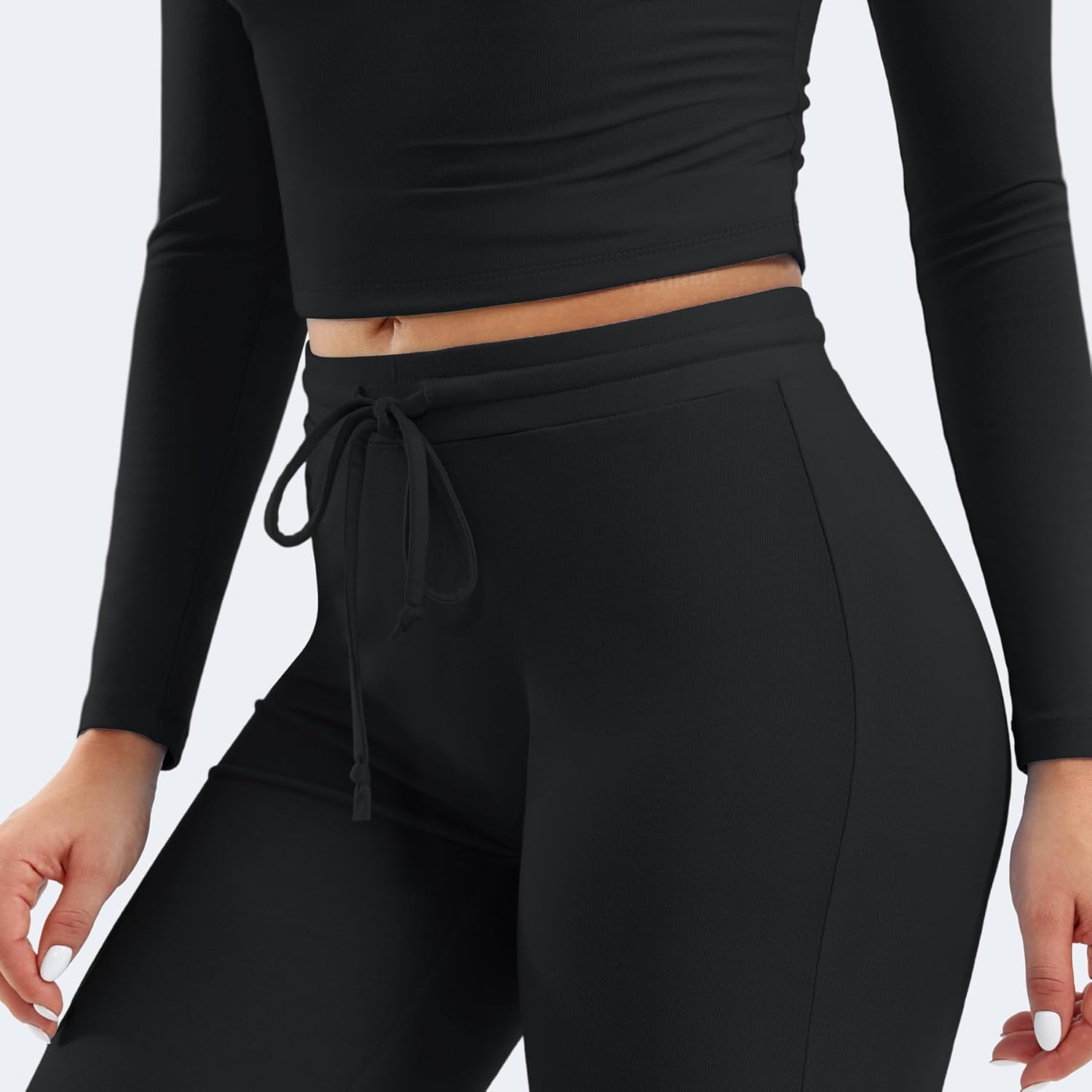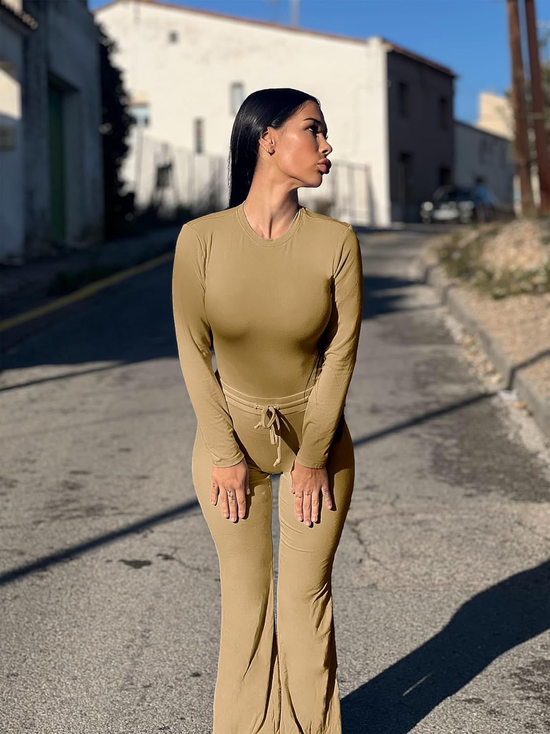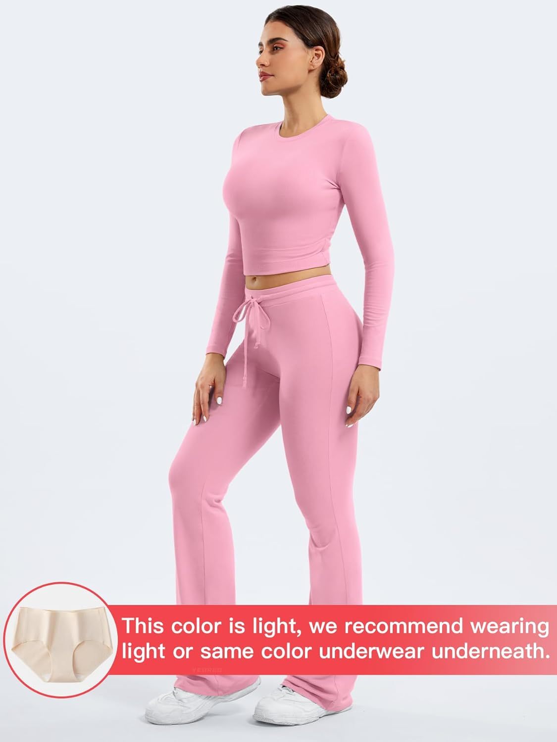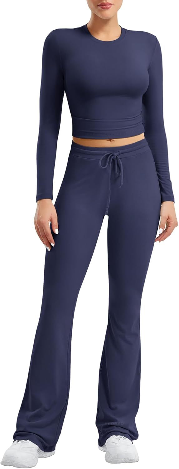 YEOREO Two Piece Sets for Women Long Sleeve Tops Lounge Set Drawstring Wide Leg Pants Ava Matching