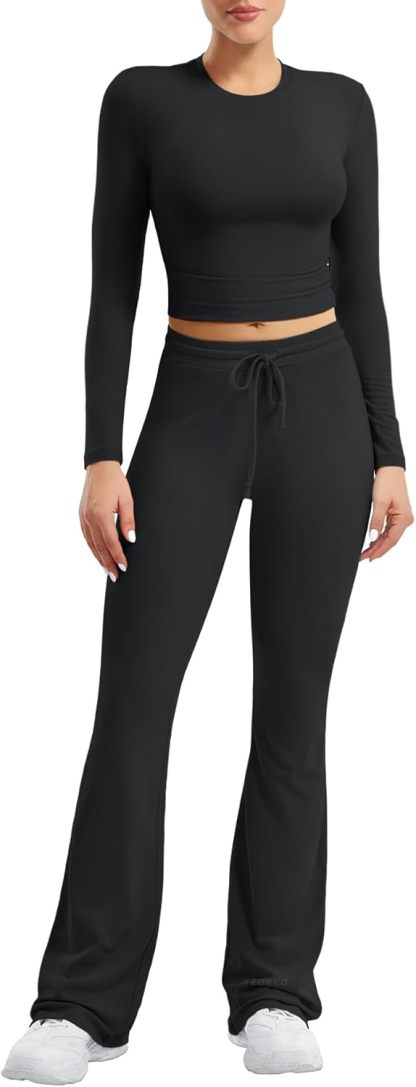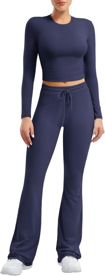 Lounge Sets Long Sleeve Tops Flare Pants Matching Set